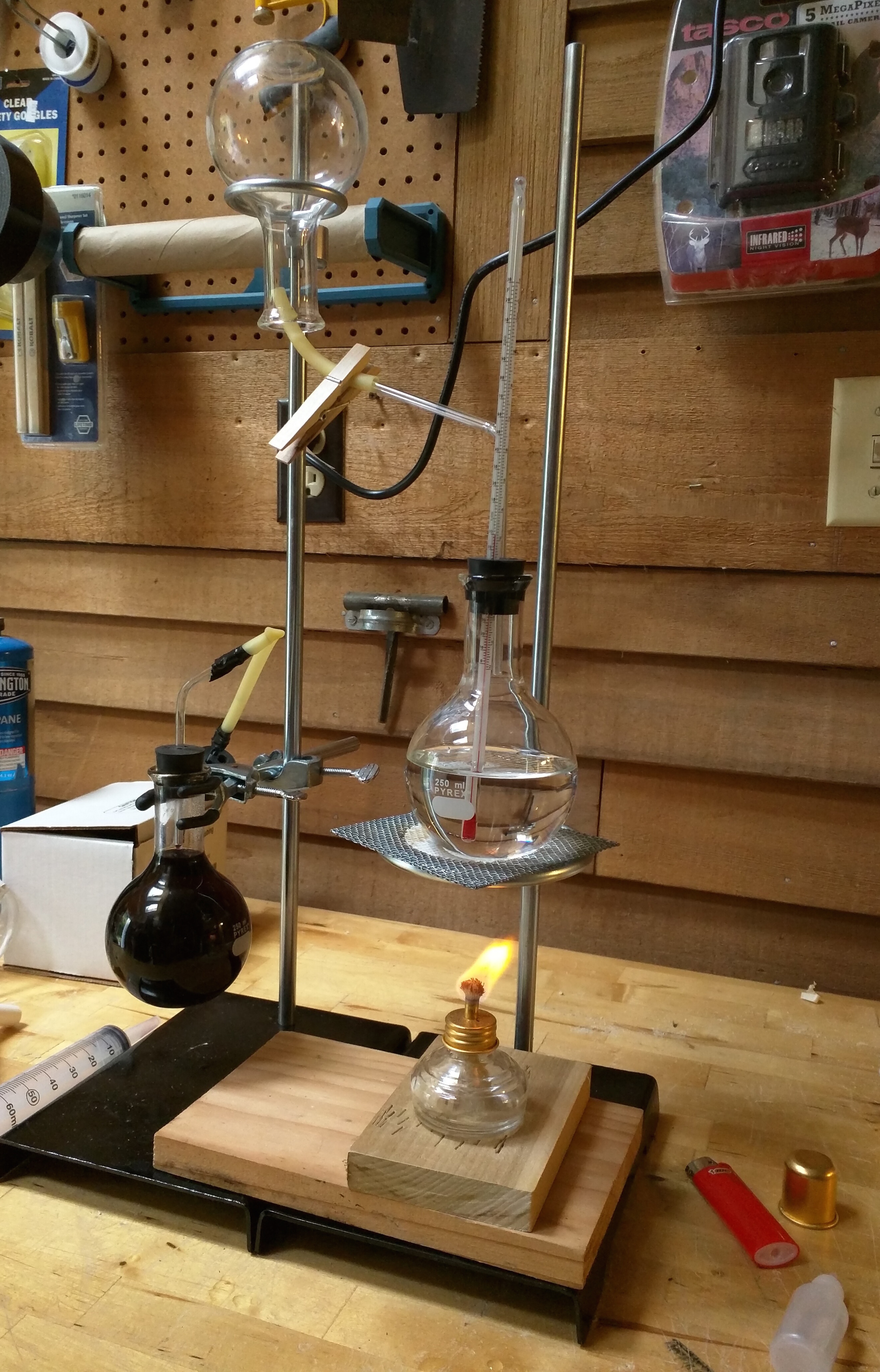 I got the idea for distilling apple juice from the MEL science kit on distillation. The MEL science kits seem like a really interesting, new, spin on science kits. I do not like the looks of some of their equipment and experimental setups, but that said they do include all the equipment needed to do some really interesting experiments for really reasonable price.