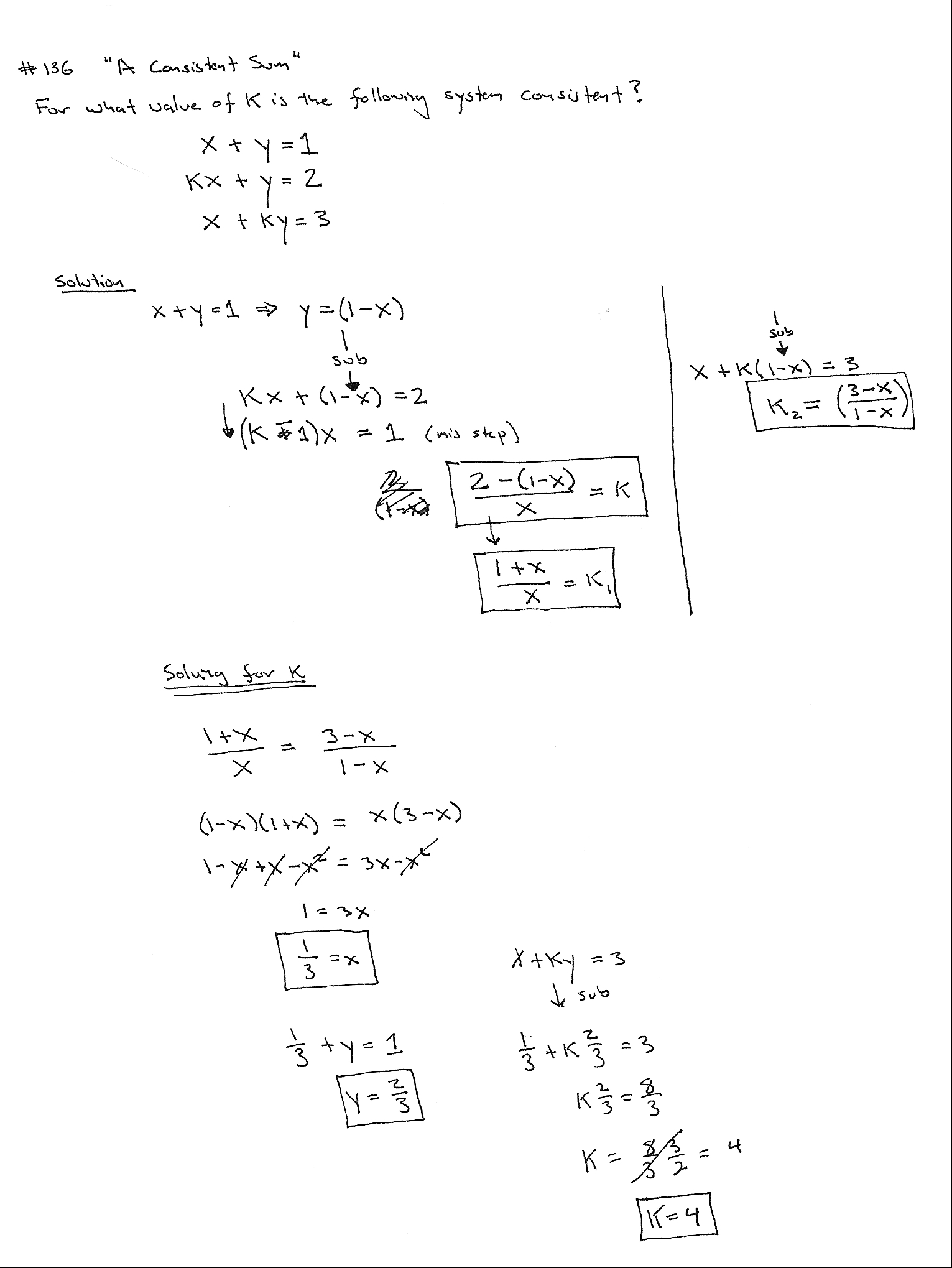 [Problem from mathematical quickies - #136 "A Consistent sum"]