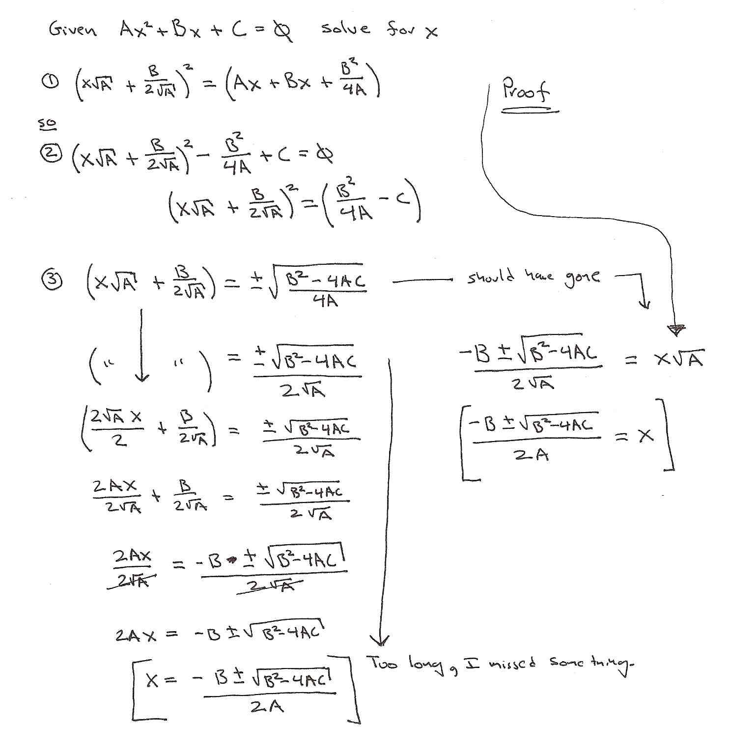 (x(sqrt(A))+(B/(2sqrt(A))))^2 - (B^2/4A) + C = 0