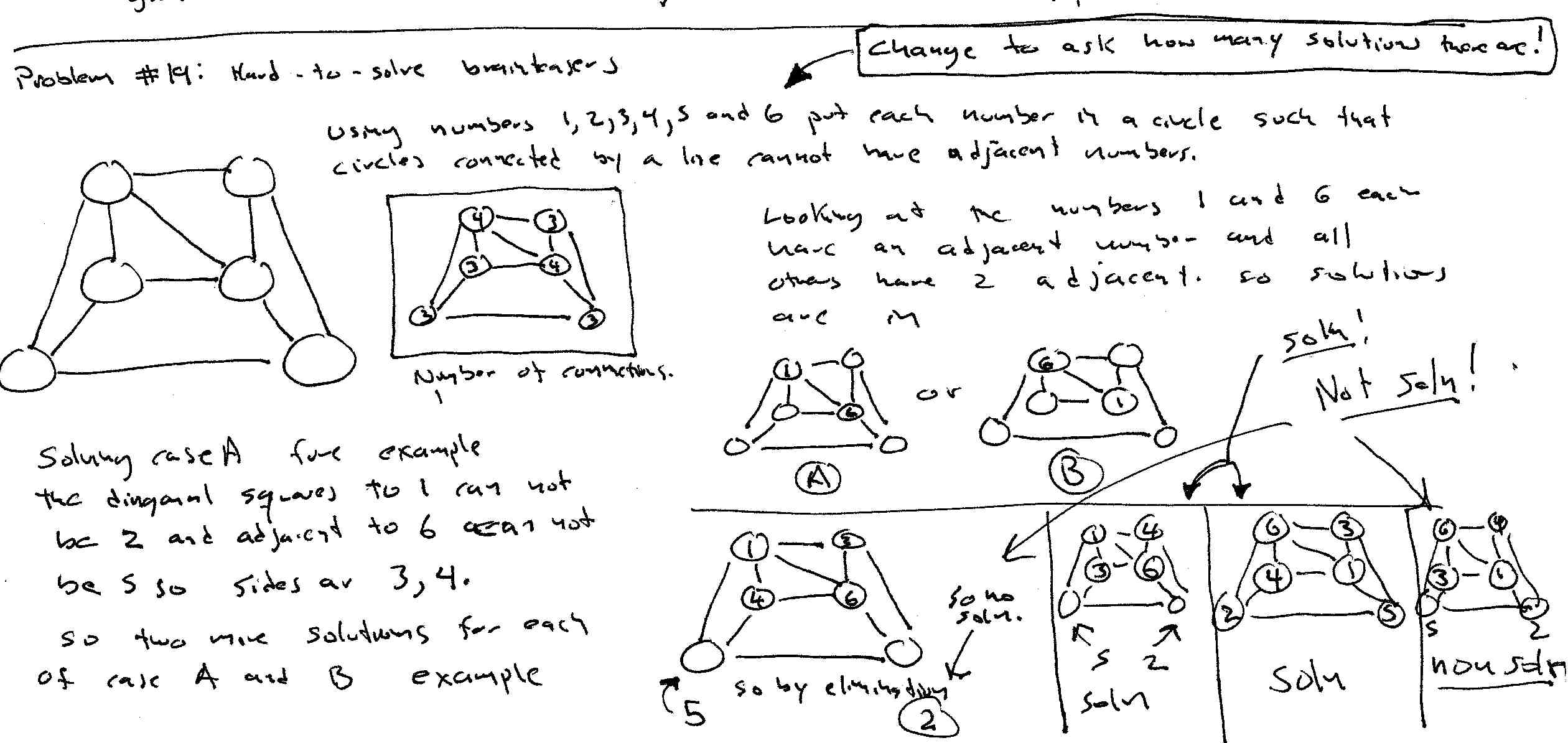 adjacent then 1 and 6 are each not adjacent to four numbers
