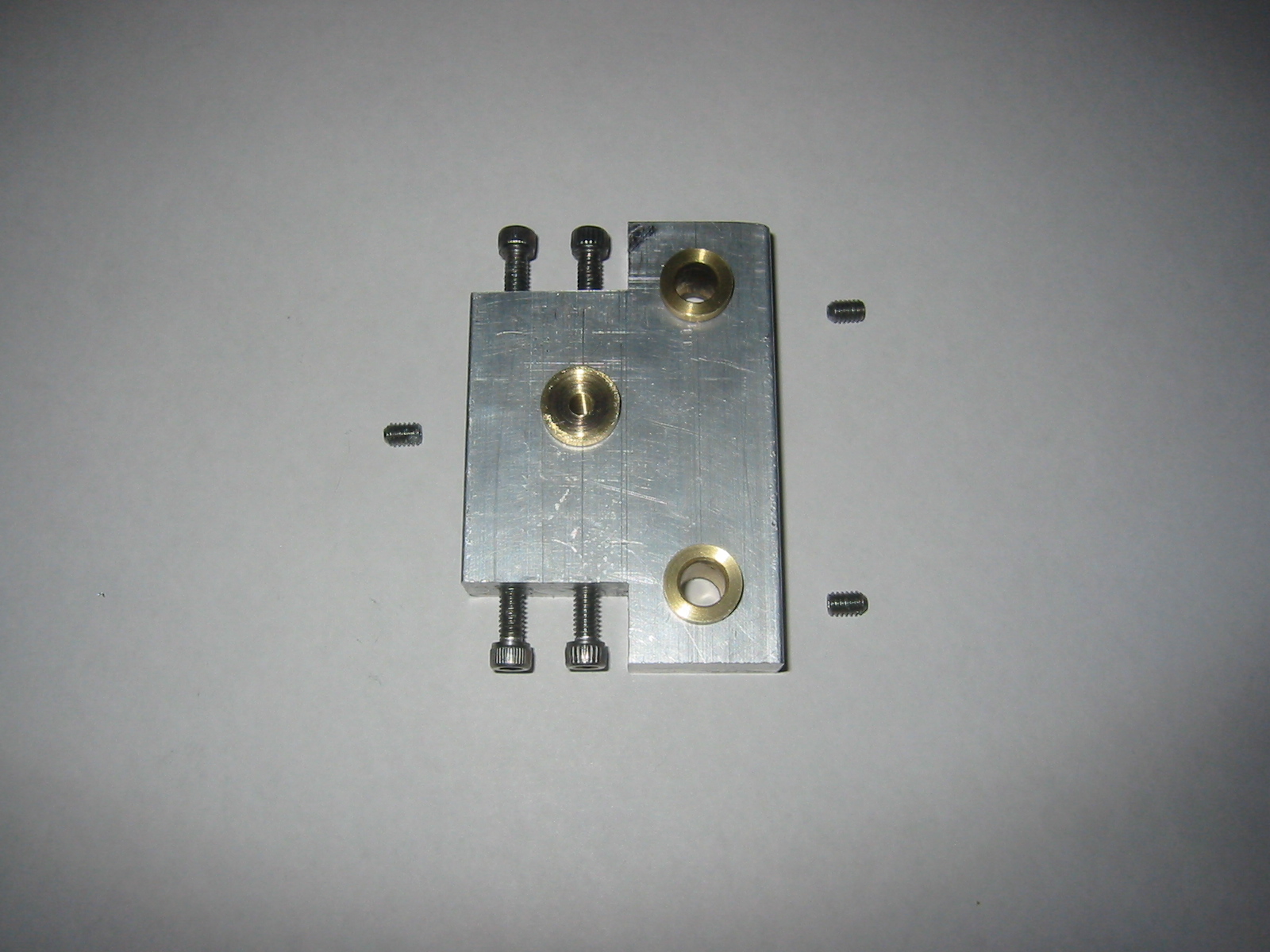 Pictured left is the modified Y-axis shuttle, brass