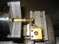 The pin was just turned up into a T from brass barstock. Once turned I rechecked the T piece and center drilled and threaded it. |
